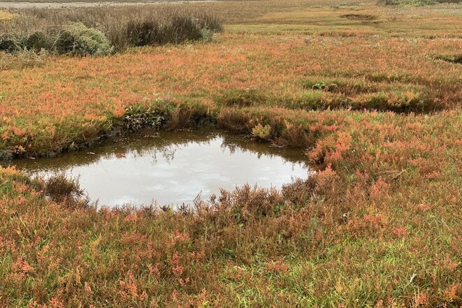 Direct vanaf veerhaven ‘t Horntje klommen we naar het uitzichtpunt met uitzicht op de haven, Den Helder, Den Hoorn en de Mokbaai. Vervolgens wandelden we langs de Mokbaai over het dijkje naar de Moksloot die in oktober weer toegankelijk is. Op het dijkje moesten we even wijken voor een groep vogelaars omdat er een bijzonder vogeltje op het wandelpad zat en ze liever hadden dat we die niet zouden verstoren.