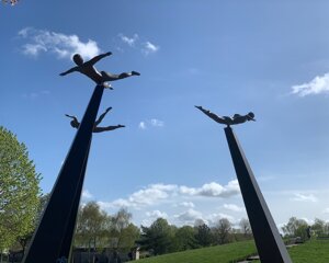 De wandeling vervolgde door het Griftpark, een prachtig glooiend gebied rondom ene forse waterplas. Vroeger stond hier de gasfabriek. Die had de grond dermate ernstig vervuild dat zelfs na een dure sanering woningbouw niet verantwoord was. In het park staat het bijzondere Monument van Vlucht en Verzet dat herinnert aan de slavernij.