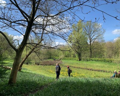 Via een groen wandelpad langs een grachtje met natuurlijke oevers bereikten we Herman’s woning. De abrikozencake en koffie smaakten prima en aldus gesterkt wandelden we verder langs de gebouwen waar vroeger de Universiteit van Utrecht diergeneeskunde onderwees. Na alweer een mooi parkje bereikten we het Natuurpark Bloeyendael.